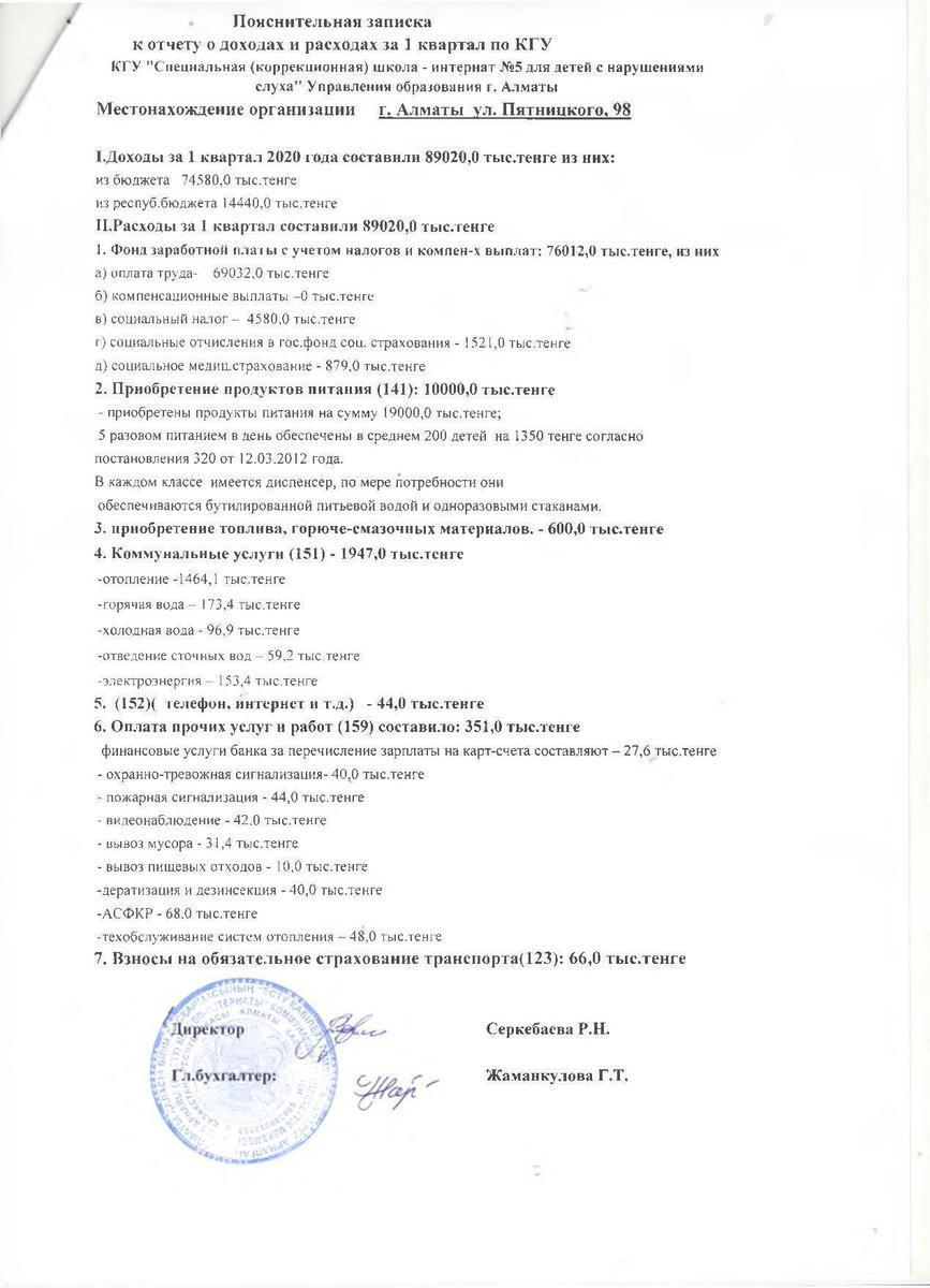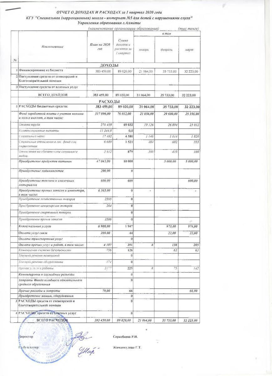 » Отчет о доходах и расходах за 1 квартал 2020 г