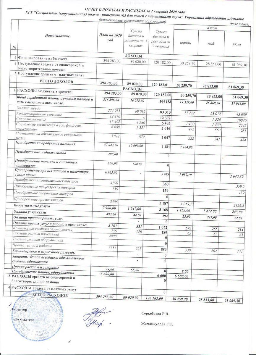 Отчет о доходах и расходах за 2 квартал 2018 года