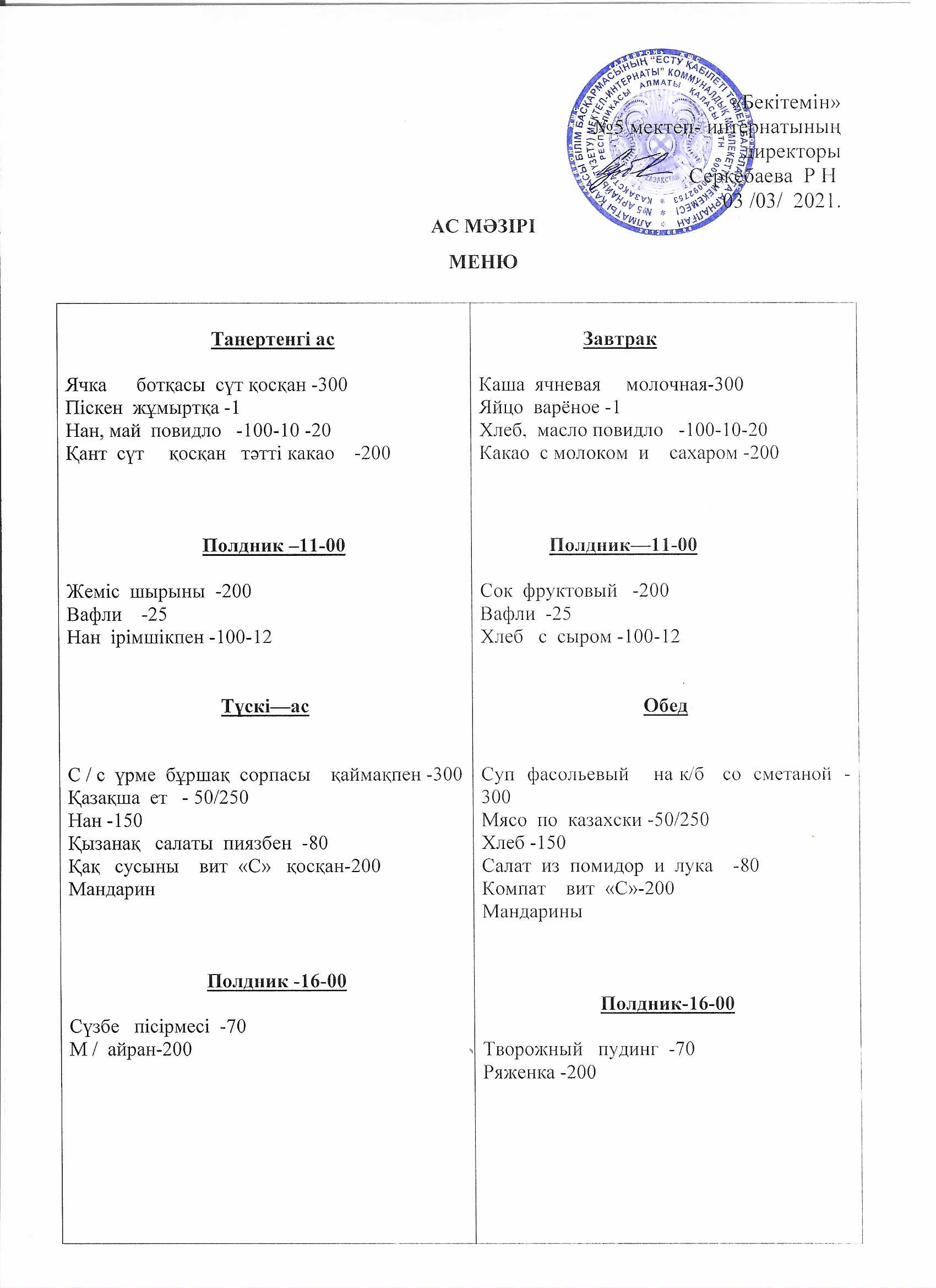 » Ежедневное меню на 03.03.2021г.