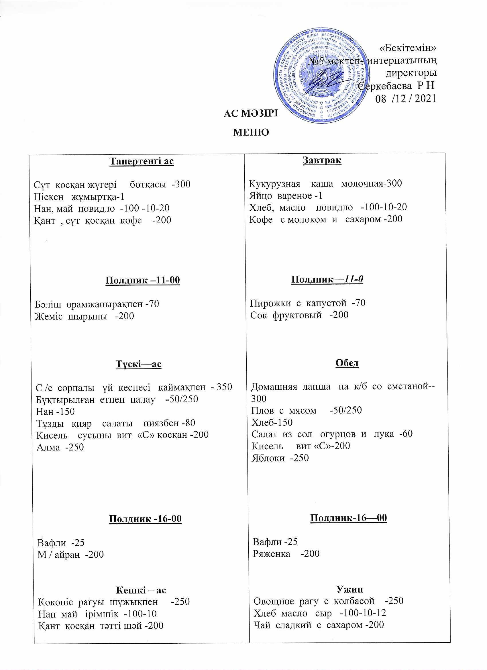 » Ежедневное меню на 08.12.2021г.
